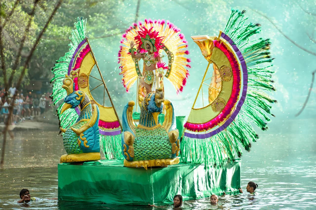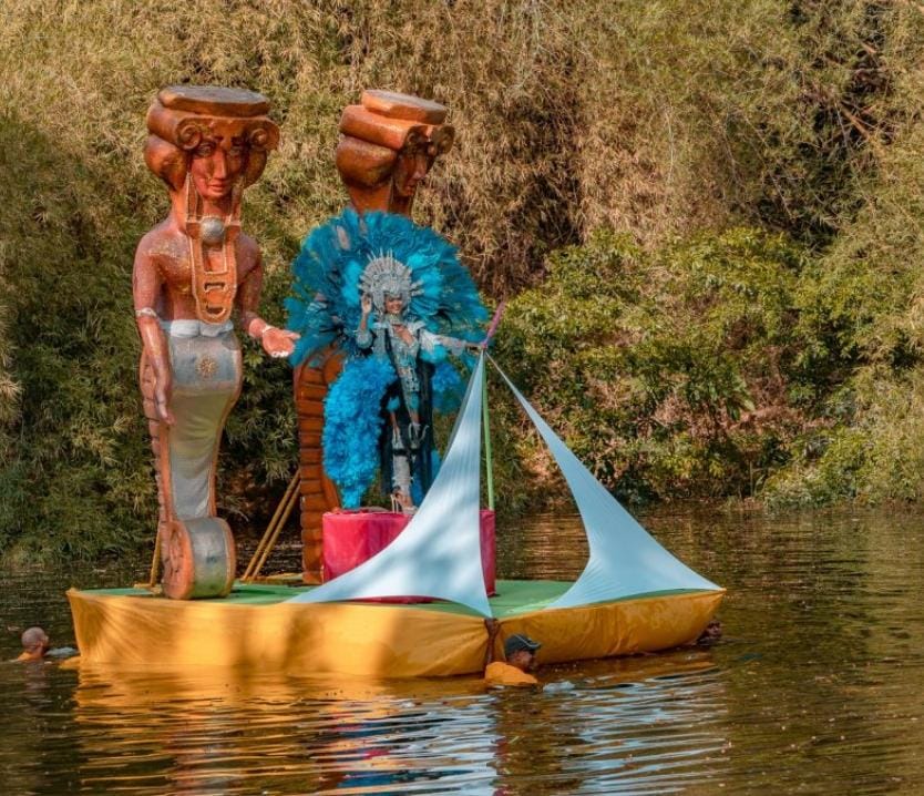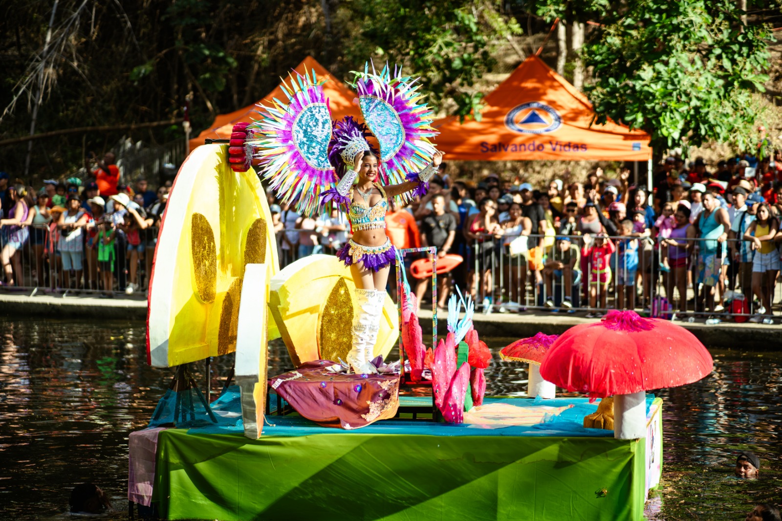 “El desfile se desarrolla en el río Zaratí, cuyas aguas sirven de escenario para balsas decoradas por artesanos locales, convertidas en tarimas flotantes que exhiben creatividad, identidad y tradición. Jóvenes del lugar se encargan de guiarlas en un recorrido corto, permitiendo al público apreciar de cerca cada propuesta”, explicó Morrell.